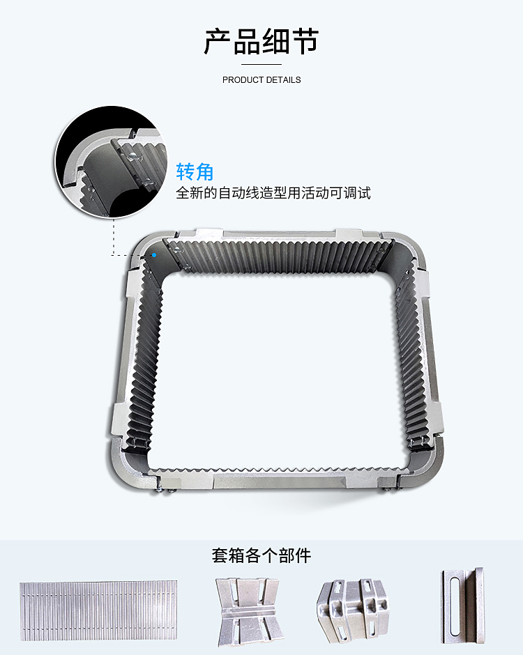 2、套箱组件(转角、侧边、手柄)全标准化设计,实现标配;