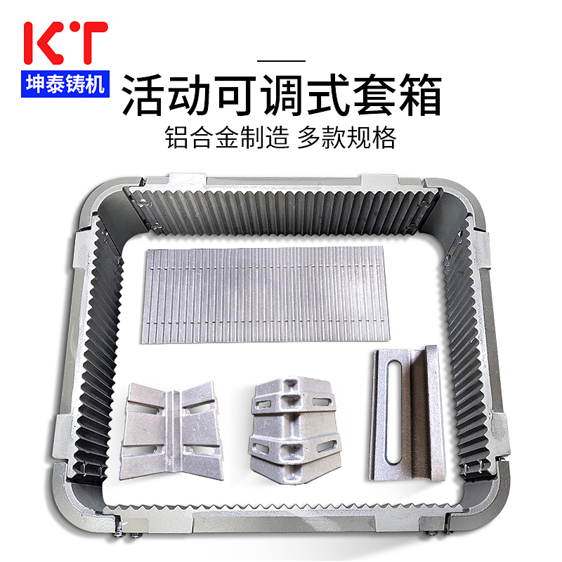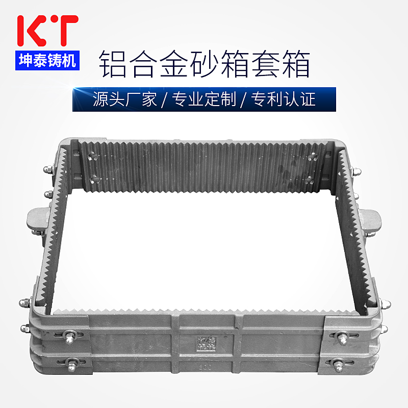针对套箱被铝水烫坏了怎么办这一点,东莞市厚街坤泰铸造机械设备厂根据多年的经验,收集大量客户意见,设计和制造出全新的自动线造型机用“可调节式铝合金活动套箱”,并已获得国家专利,自投放市场以来备受广大客户欢迎。